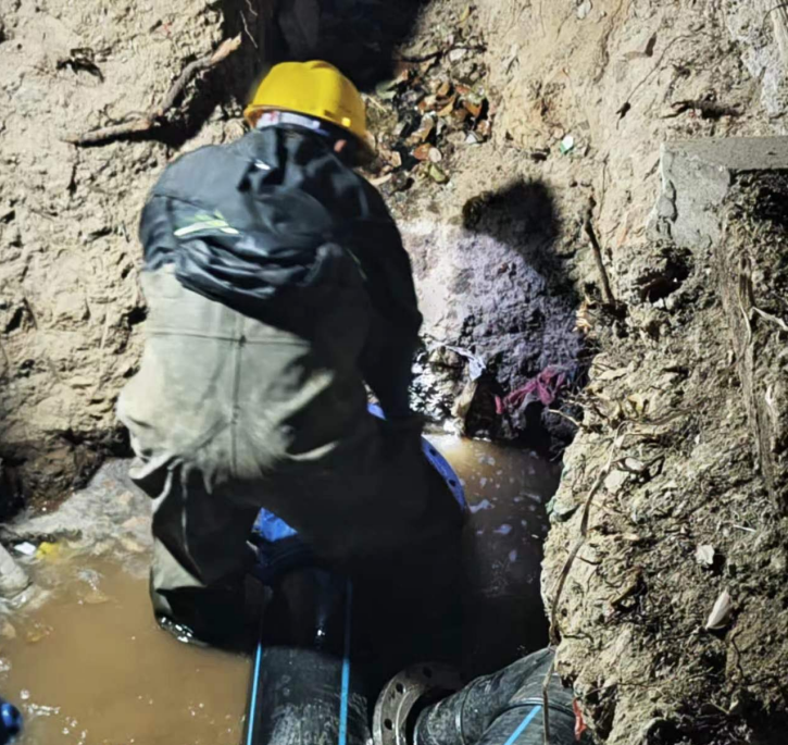 “末端”不末尾,問題不過夜。欣和電子位于高新區(qū)供水管網(wǎng)最末端,周邊聚集了多家24小時連續(xù)生產的企業(yè)。廠區(qū)用水報裝需在DN200管網(wǎng)破口接水,新安裝DN100機械表,既要穿越車流滾滾的主干道,又不能影響“鄰居”們一滴水的正常供應。接到求助后,水務集團建設工程公司立即啟動“高新企業(yè)用水綠色通道”,青年突擊隊成員10分鐘集結完畢,技術骨干連夜踏勘現(xiàn)場。
